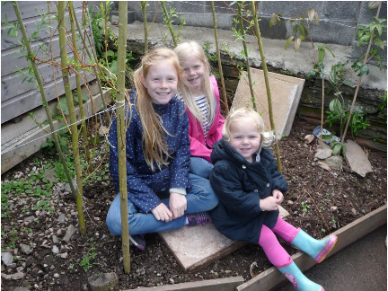 Young visitors in the willow tepee |